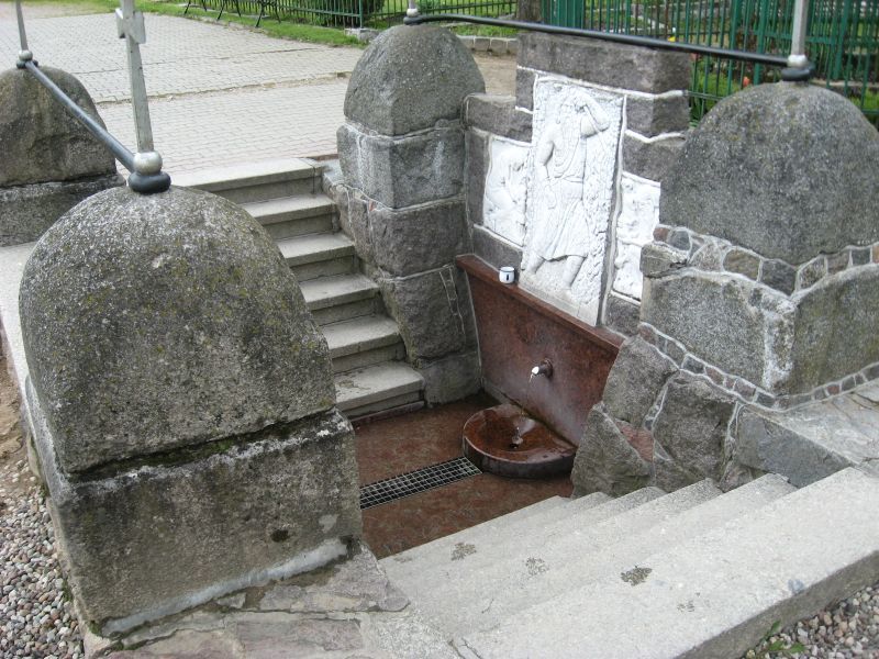 zr0-150x113 Cudowne źródełko8 września 1877 roku wieczorem Matka Boża pobłogosławiła źródełko w Gietrzwałdzie na prośbę ówczesnego proboszcza. Pielgrzymi od blisko 140 lat czerpią wodę, która przynosi ulgę cierpiącym i powoduje liczne uzdrowienia. Sam akt błogosławieństwa został uwieczniony figurą Niepokalanej Dziewicy w altance. Wodę przeprowadzono do kamiennych studzienek w formie czasz. Wspierają je stojące anioły o twarzach pastuszych. Nad źródełkiem znajdują się trzy marmurowe płaskorzeźby, ukazujące Mojżesza, dotykającego laskę skałę, z której wytrysnęła woda i Izraelitów, pijących wodę na pustyni. Prowadzącą do źródełka Aleję Różańcową wysadzono grabowymi drzewami. Przy niej umieszczono piętnaście Kapliczek Różańcowych, a więc tyle ile jest tajemnic różańcowych. Stare zostały wymienione w 1977 roku. Nieopodal znajduje się Kalwaria Gietrzwałdzka powstała w XX wieku. Kalwaria to zespół kaplic symbolizujących stacje Męki Pańskiej, zakładany zazwyczaj na wzgórzach, tak by przypominał swym położeniem Jerozolimę.